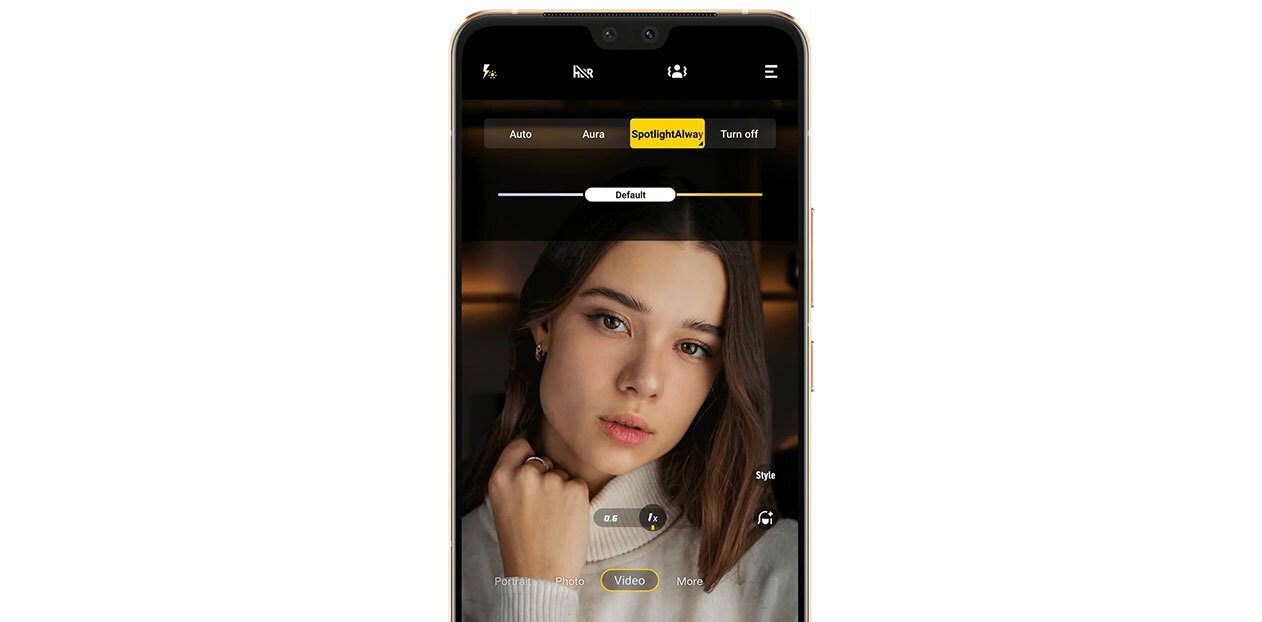 تمنحك ميزة Spotlight Portrait Video الضوء الإضافي الذي تحتاجه لالتقاط مقاطع فيديو ثلاثية الأبعاد ذات سطوع ناعم.